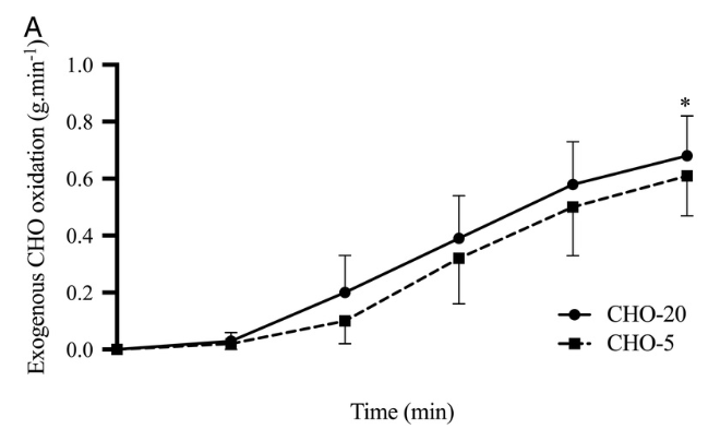 Mears et al. (2020). Exogenous carbohydrate oxidation rates during exercise in CHO-20 and CHO-5.